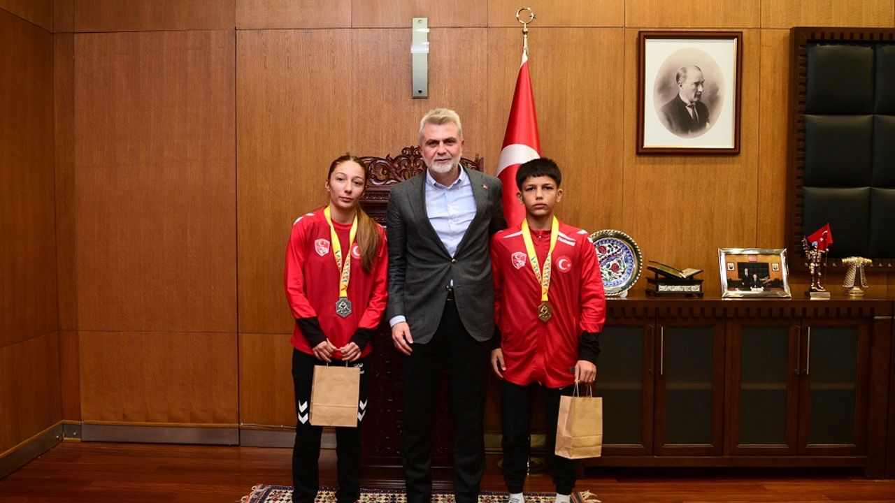 Ziyarete ilişkin değerlendirmelerde bulunan Büyükşehir Belediye Başkanı Fırat Görgel, “Romanya’da düzenlenen U17 Güreş Balkan Şampiyonası’nda elde edilen bu önemli başarı, bizler için büyük bir gurur kaynağı oldu. 48 kilogramda Balkan Şampiyonu olan Şamil Şahan’ı, 45 kilogramda altın madalya kazanan İbrahim Bera Kıvrak’ı ve 43 kilogramda gümüş madalya elde eden Hatice Kazmacı’yı yürekten kutluyorum. Kahramanmaraş, tarih boyunca spora ve özellikle güreşe büyük değer vermiş bir şehir. Bu genç sporcularımız, bu geleneği başarıyla sürdürerek bizlere onur yaşattı. Bizler de Kahramanmaraş Büyükşehir Belediyesi olarak sporun her branşında gençlerimizin yanında olmaya, tesis yatırımlarımızı artırmaya ve geleceğin şampiyonlarını desteklemeye kararlıyız. Şampiyonlarımızı, ailelerini ve emeği geçen antrenörlerimizi tebrik ediyor, başarılarının daim olmasını diliyorum” ifadelerini kullandı.