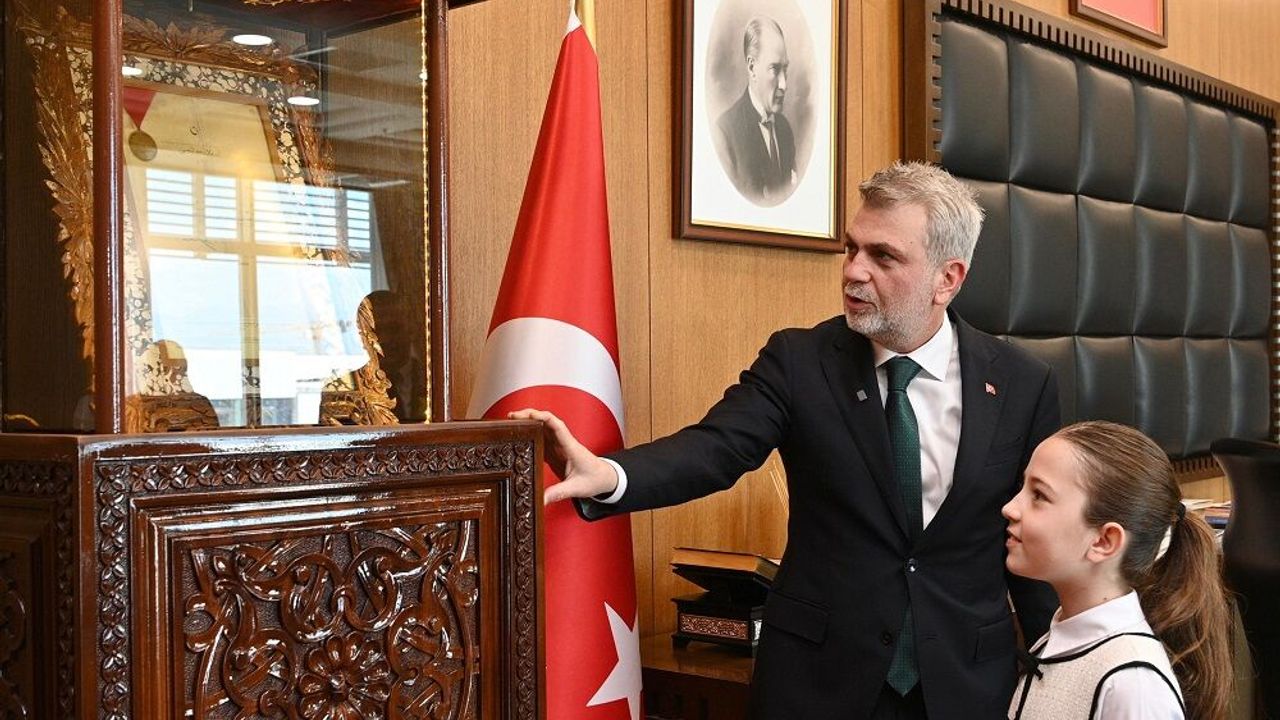 Temsili devir teslim töreni, bayramın ruhuna yakışır şekilde samimi ve renkli görüntülere sahne oldu. Minik başkan Erva Zehra Boyraz’a teslim töreninde; kuzeni özel gereksinimli şampiyon yüzücü Sertaç Tahsin Boyraz, okul müdürü Duran Gül ve öğretmenleri de eşlik etti. Tören boyunca heyecanı gözlerinden okunan Erva Zehra Boyraz, başkanlık makamında oturarak hem duygu ve düşüncelerini paylaştı hem de çocukların beklentilerine yönelik mesajlar verdi. Programda konuşan Büyükşehir Belediye Başkanı Fırat Görgel, 23 Nisan’ın sadece bir bayram değil, aynı zamanda çocuklara verilen değerin ve duyulan güvenin en önemli göstergelerinden biri olduğunu vurguladı. Görgel, geleceğin teminatı olan çocukların daha güçlü, bilinçli ve donanımlı bireyler olarak yetişmesi için tüm imkânların seferber edildiğini ifade etti. Temsili başkan Erva Zehra Boyraz ise böyle anlamlı bir günde Büyükşehir Belediye Başkanı olmanın gururunu yaşadığını belirterek, kendisine bu fırsatı sunan Başkan Görgel’e teşekkür etti.