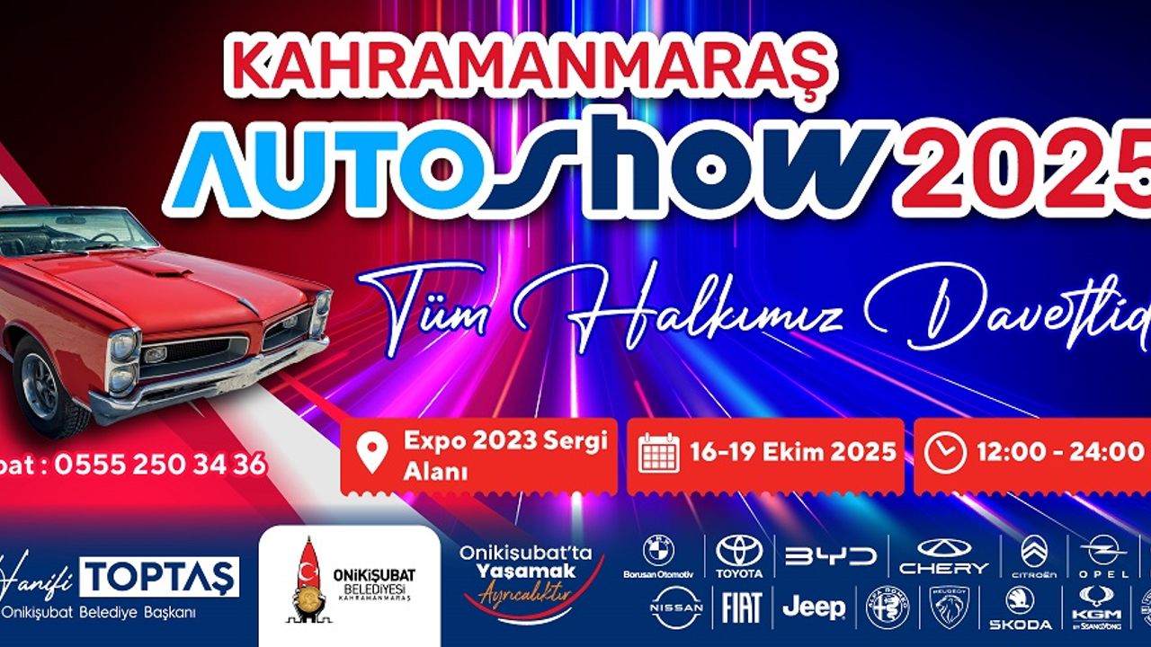 Bu kez ise otomobil tutkunlarının heyecanla beklediği dev bir organizasyona ev sahipliği yapacak olan Hanifi Toptaş öncülüğündeki Onikişubat Belediyesi, bölgenin en büyük Auto Show etkinliğin kapılarını ziyaretçilere açıyor. Otomotiv sektörünün dev markalarının yer alacağı fuar, hem sektöre hem de araç meraklılarına adeta görsel bir şölen sunacak.