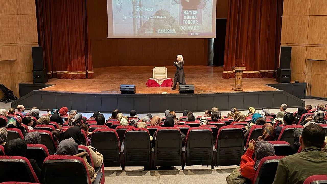 Mehmet Akif Ersoy Kültür Merkezi’nde yoğun katılımla gerçekleştirilen söyleşide Tongar, kadının aile ve toplum içerisindeki rolü ve önemine dikkat çekti.