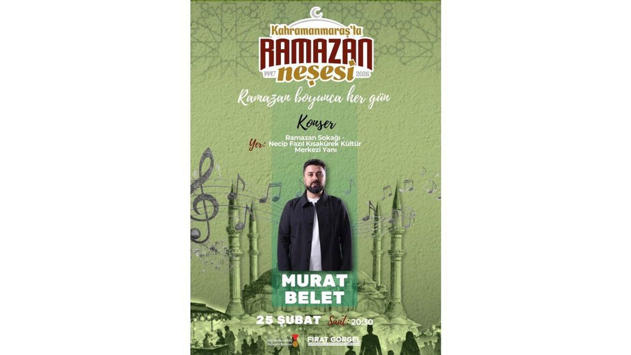 Ramazan ayının manevi atmosferini güçlendirmek amacıyla düzenlenen kültür ve sanat etkinlikleri, 25 Şubat Çarşamba günü gerçekleştirilecek özel bir musiki dinletisiyle devam edecek. Etkinlik, Necip Fazıl Kısakürek Kültür Merkezi yanındaki Ramazan Sokağı’nda saat 20.30’da başlayacak. Ramazan akşamlarının huzur ve paylaşım iklimini pekiştirmeyi hedefleyen programda, tasavvufi ve manevi içerikli eserler seslendirilecek. Geniş bir dinleyici kitlesine hitap eden Murat Belet; “Yara Bende”, “Kara Sevda”, “Senle Mekke Medine”, “Dilerse Sultanım”, “Bir Yanım Gazze”, “Hicret”, “Medinedir Medine”, “Gül Ola” ve “Sana Geldim” gibi sevilen eserlerini müzikseverler için yorumlayacak. Duygu yüklü repertuvarıyla bilinen sanatçının, Ramazan’ın ruhuna uygun bir atmosfer oluşturacak. Büyükşehir Belediyesinden yapılan açıklamada, Ramazan ayının birlik, beraberlik ve kardeşlik duygularını pekiştirdiğine dikkat çekilerek, düzenlenen etkinliklerle vatandaşların hem manevi hem de kültürel anlamda zengin bir Ramazan geçirmesinin amaçlandığı belirtildi. Açıklamada ayrıca, tasavvuf musiki dinletisine tüm vatandaşların davetli olduğu ifade edildi.