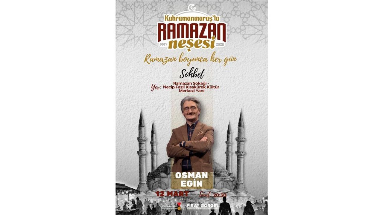 Bu yıl ilk kez oluşturulan Ramazan Sokağı, her akşam farklı programlarla vatandaşların buluşma noktası olmaya devam ediyor. Bu kapsamda, hafız ve yazar Osman Egin, 12 Mart Perşembe günü Kahramanmaraşlılarla buluşacak. Saat 20.30’da başlayacak söyleşide hafız Egin, Ramazan ayının manevi derinliğine yönelik değerlendirmelerde bulunacak. Egin, Kur’an-ı Kerim’den ayetler, hadisler ve ibretlik kıssalar eşliğinde Ramazan’ın insan hayatındaki önemi ele alacak; sabır, paylaşma, yardımlaşma ve manevi arınma gibi konuları da katılımcılarla paylaşacak. Büyükşehir Belediyesinden yapılan açıklamada, bu maneviyat dolu programa tüm vatandaşların davetli olduğu belirtildi.