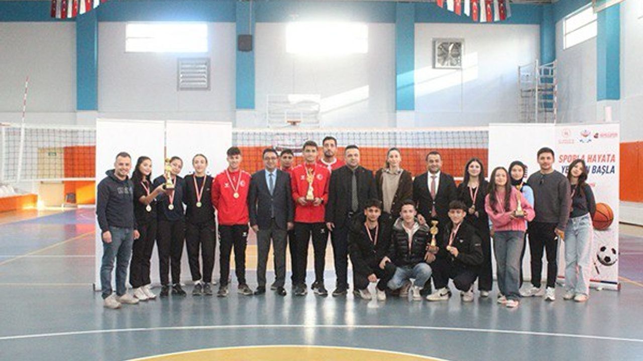 İkinci olan Nurettin Topçu Anadolu Lisesi (B) sporcuları Sıla Karagöz, Eylül Gökburun ve Begüm Güzel’e kupa ve madalyaları, Onikişubat Milli Eğitim İlçe Şube Müdürü Ali Solak tarafından verildi.