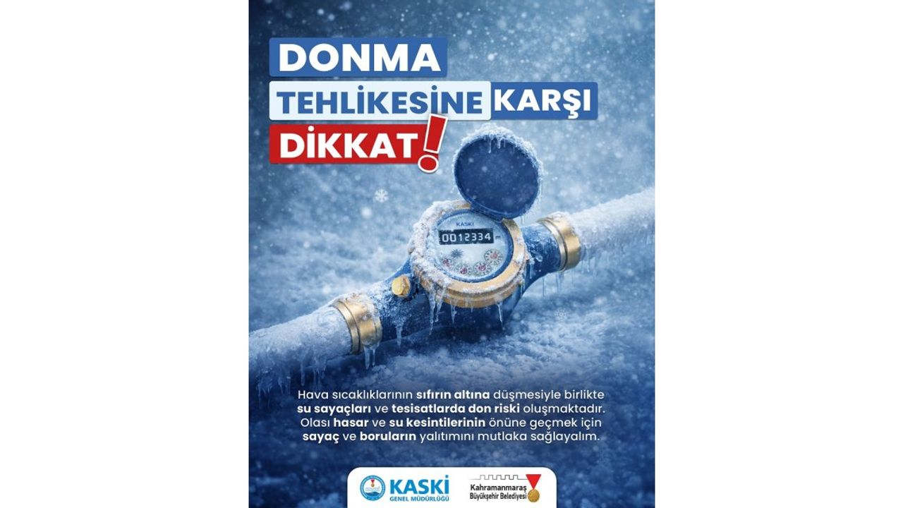 KASKİ Genel Müdürlüğü, hava sıcaklıklarının sıfırın altına düşmesiyle birlikte, su sayaçları ve tesisatlarda meydana gelebilecek donma riskine karşı vatandaşları uyardı. Yapılan açıklamada, özellikle açıkta bulunan ve yeterli yalıtımı olmayan su sayaçlarının donma riskiyle karşı karşıya olduğu belirtildi. Donma durumunda sayaçların yanı sıra bina tesisatlarında da büyük arızalar meydana gelebileceği ifade edildi. KASKİ’den yapılan açıklamada “Hava sıcaklıklarının sıfırın altına düşmesiyle birlikte su sayaçları ve tesisatlarda don riski oluşmaktadır. Olası hasar ve su kesintilerinin önüne geçmek için sayaç ve boruların yalıtımını mutlaka sağlanmalıdır” ifadelerine yer verildi.