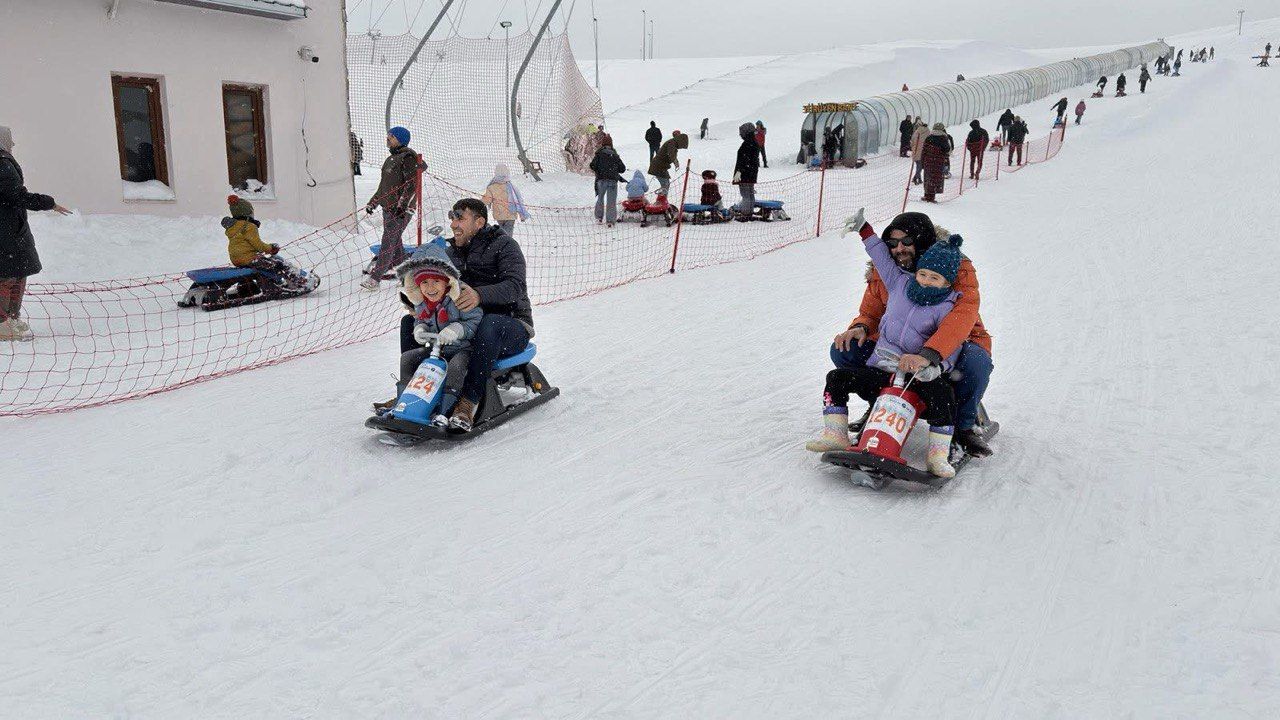 Yoğunluğun gün boyu devam ettiği Yedikuyular Kayak Merkezi, ziyaretçilerin buluşma noktası olurken, bölge ekonomisine de önemli katkı sağladı.